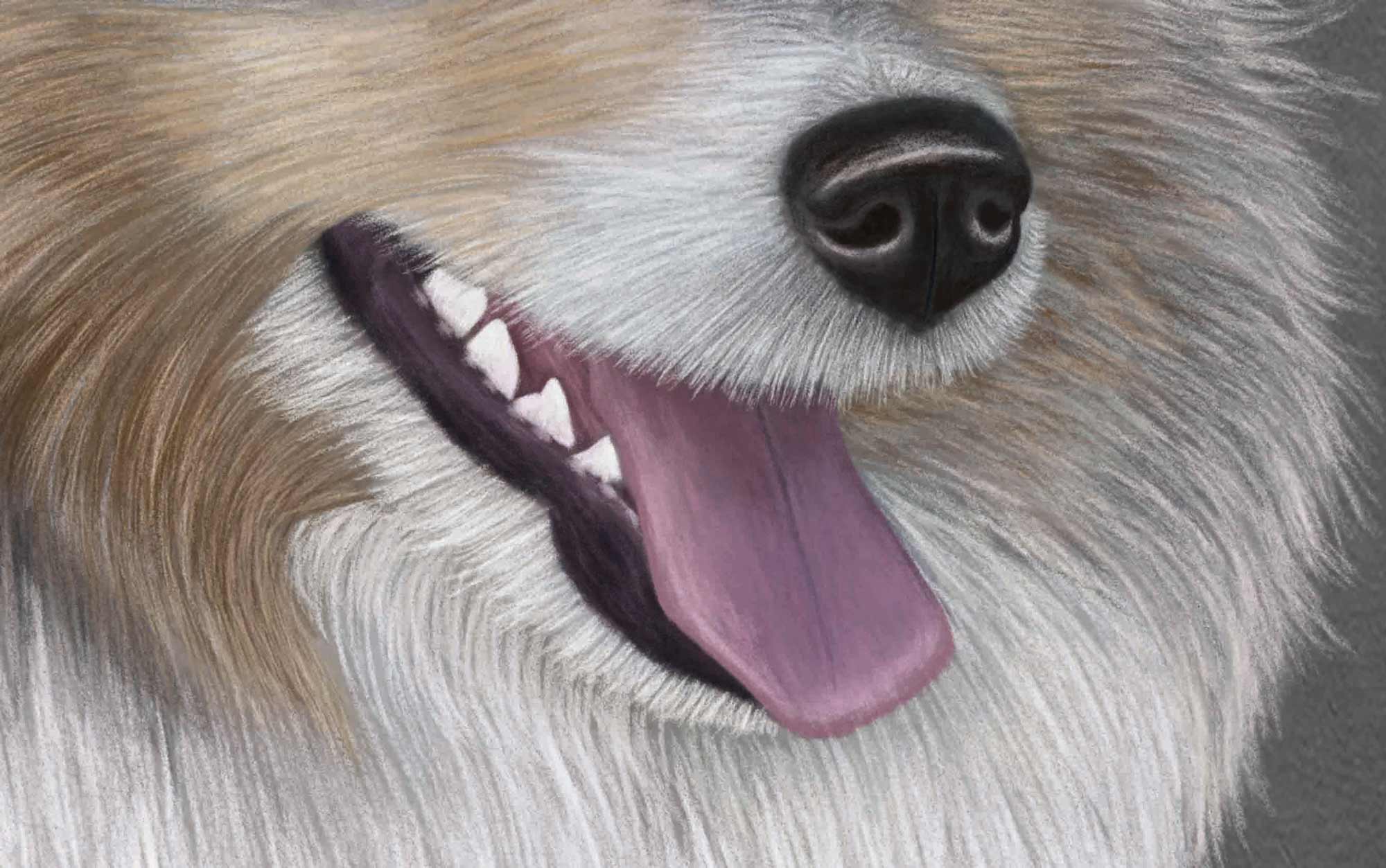 Terrierhündin "Brezel" - handgemalt in Pastellkreidetechnik
