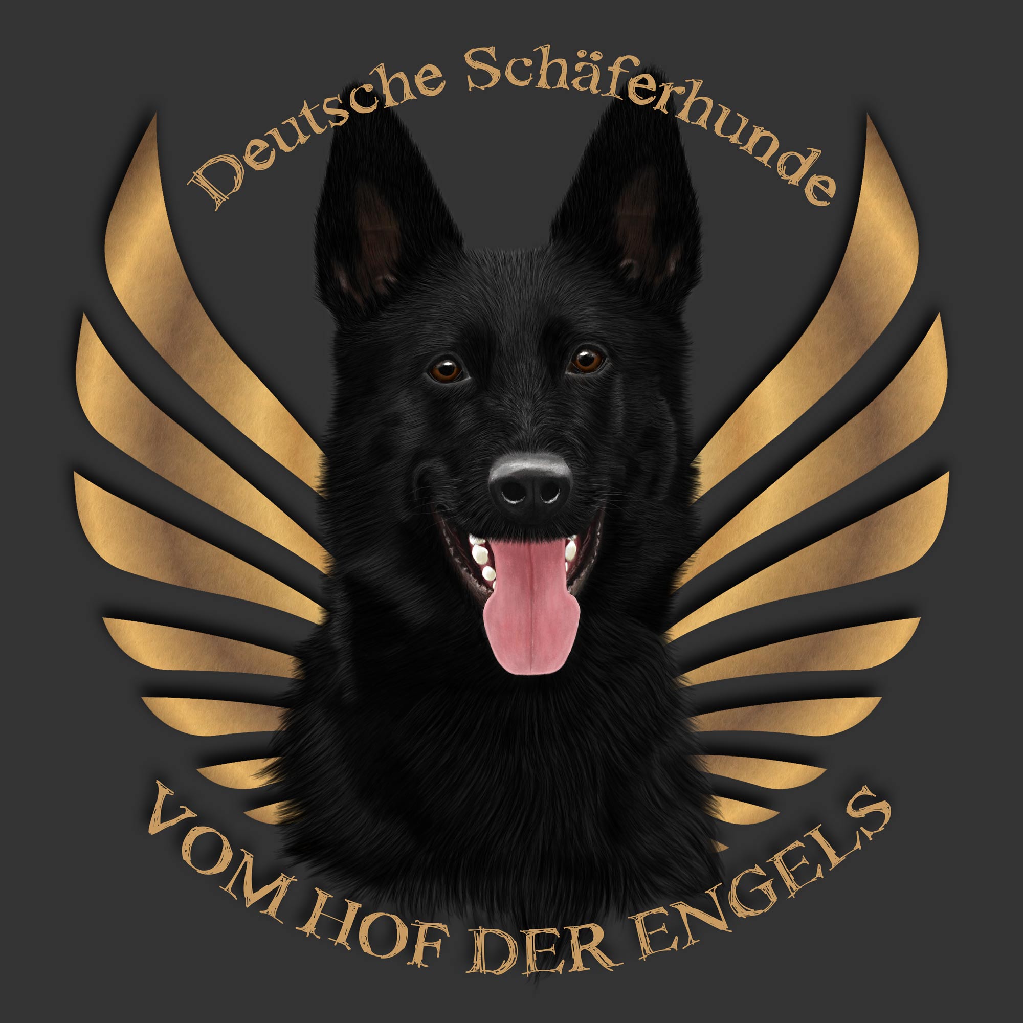 Logo für die Schäferhundezucht "VOM HOF DER ENGELS" - Hundekopf handgemalt in Pastellkreidetechnik
