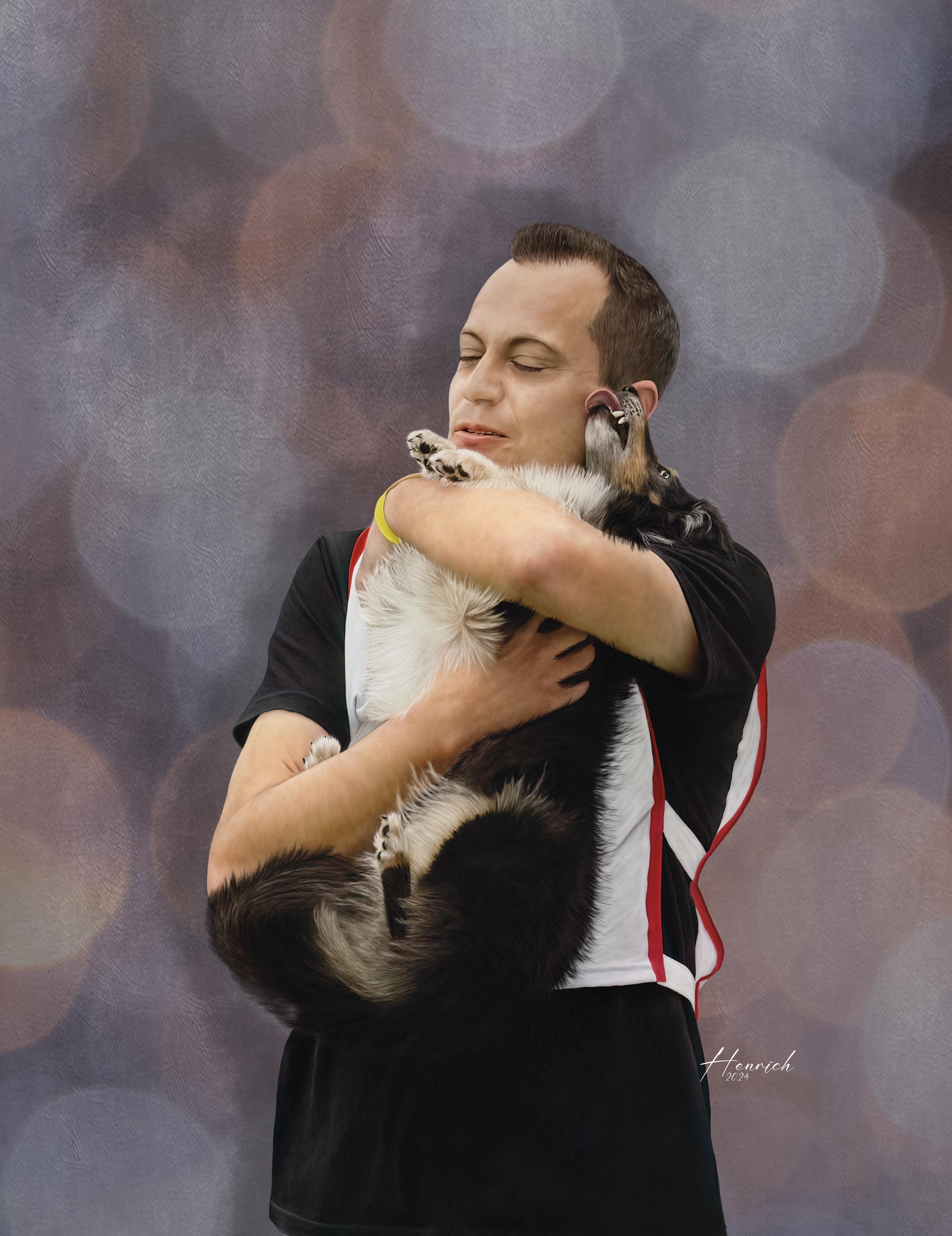 Tobias Wüst mit Dörte - komplett handgemalt in Pastellkreidetechnik, Hintergrund mit Photoshop bearbeitet und eingefügt.