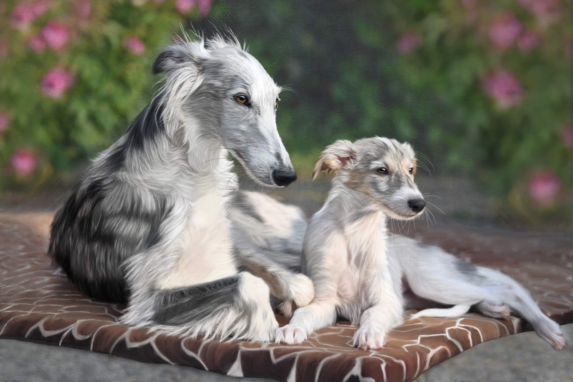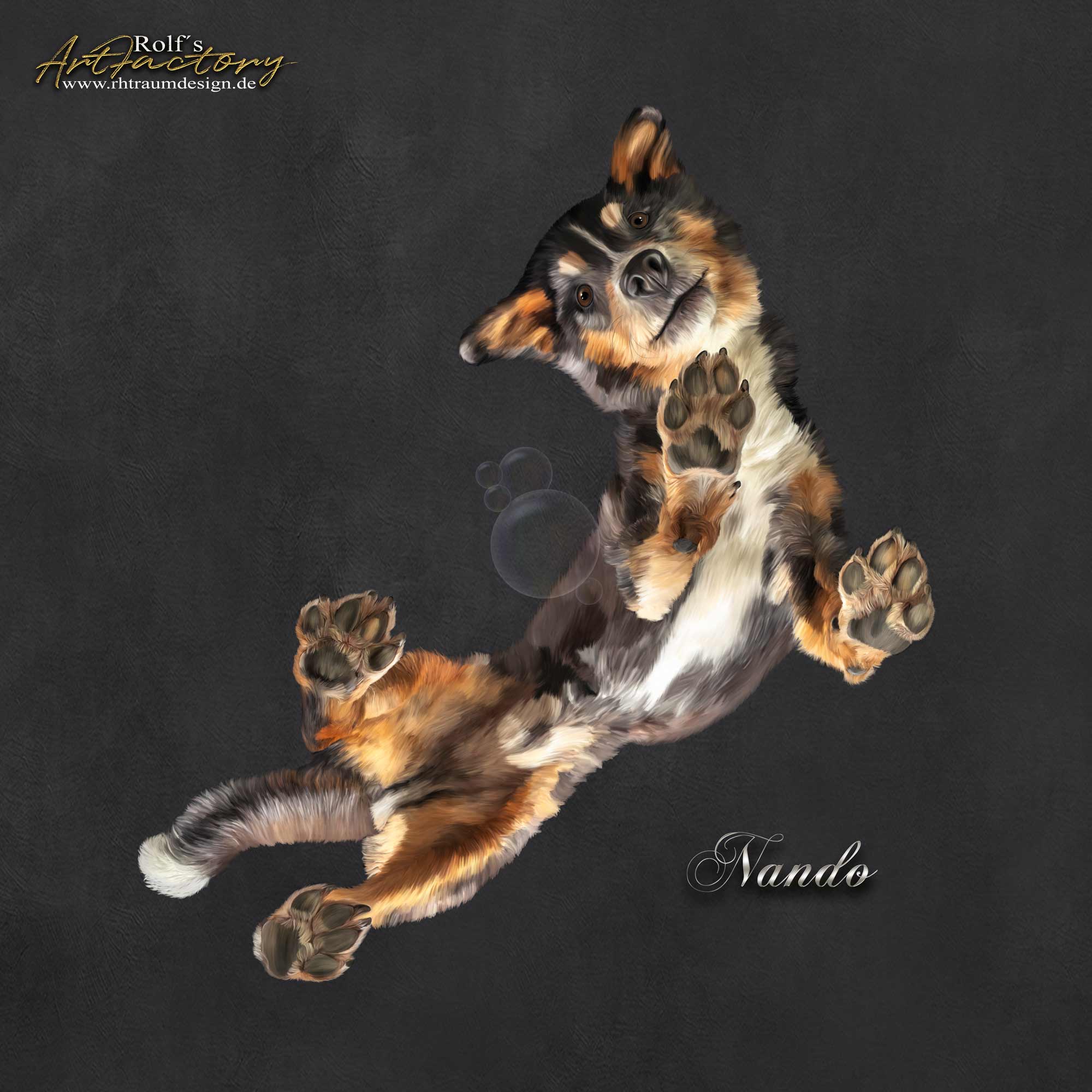 Mischling ROMINA - komplett handgemalt inclusive Hintergrund - Im Airbrushstil und Fellstruktur