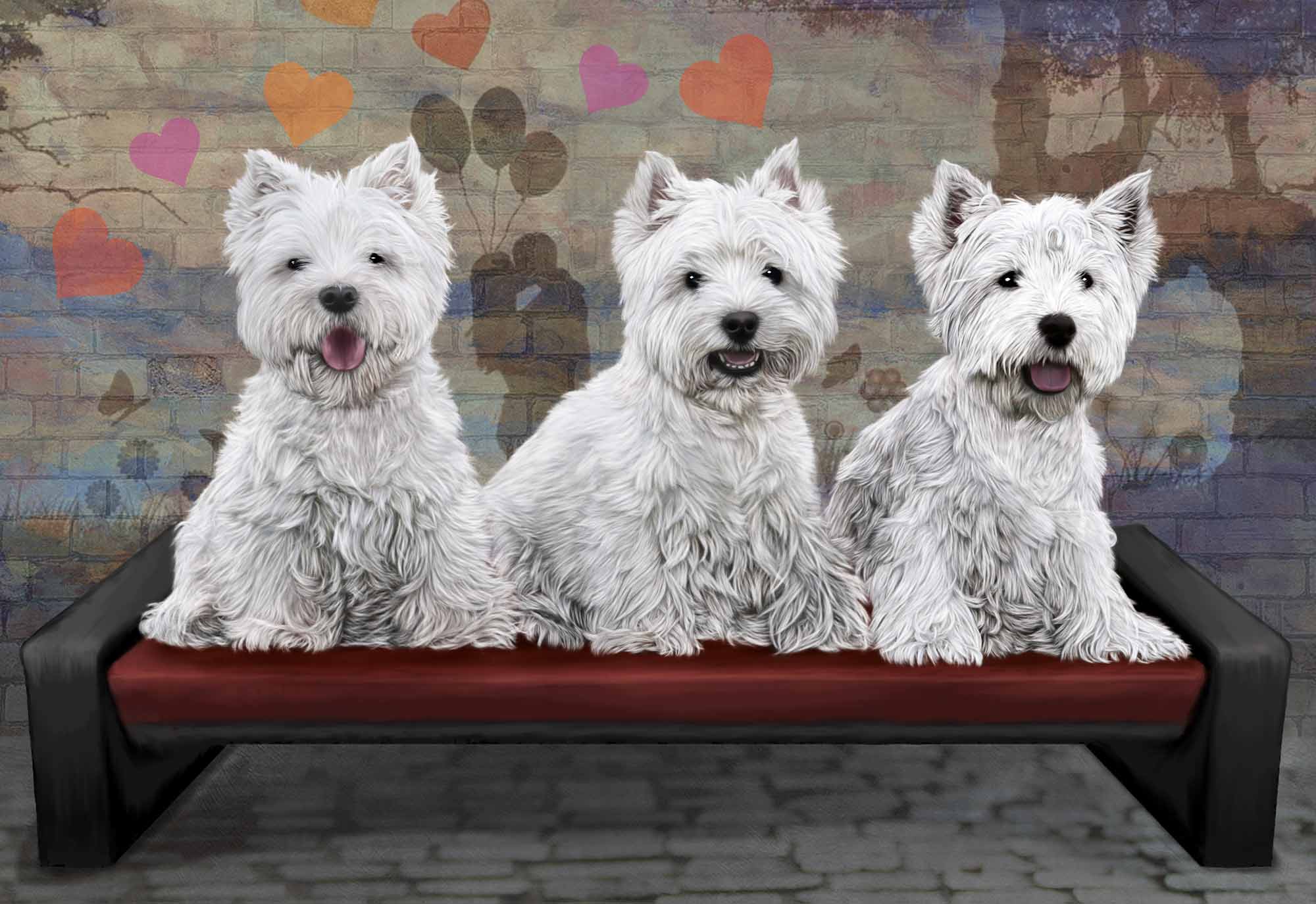 Shelties und Bank komplett handgemalt. Der Hintergrund ist eingefügt.
