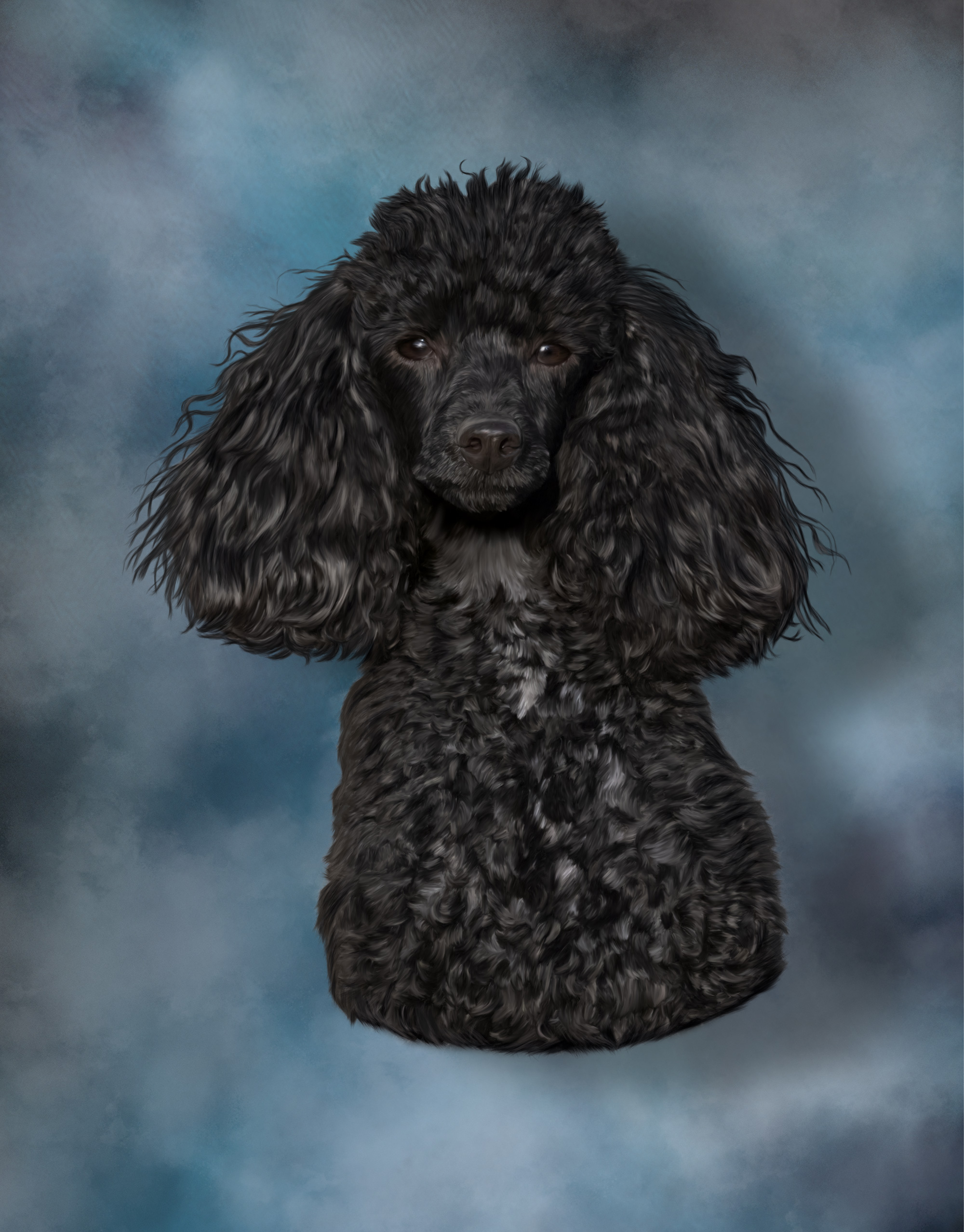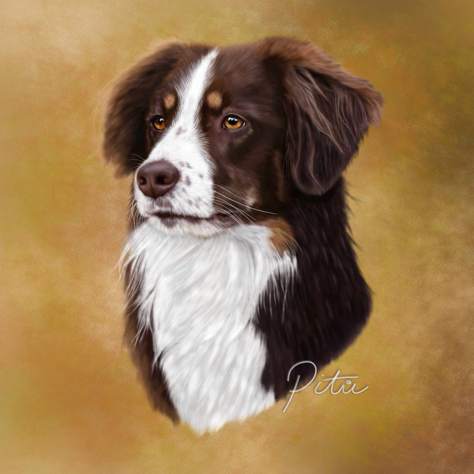 Meine Miniatur American Shephed Hündin Kiss handgemalt. Der Hintergrund ist eingefügt.