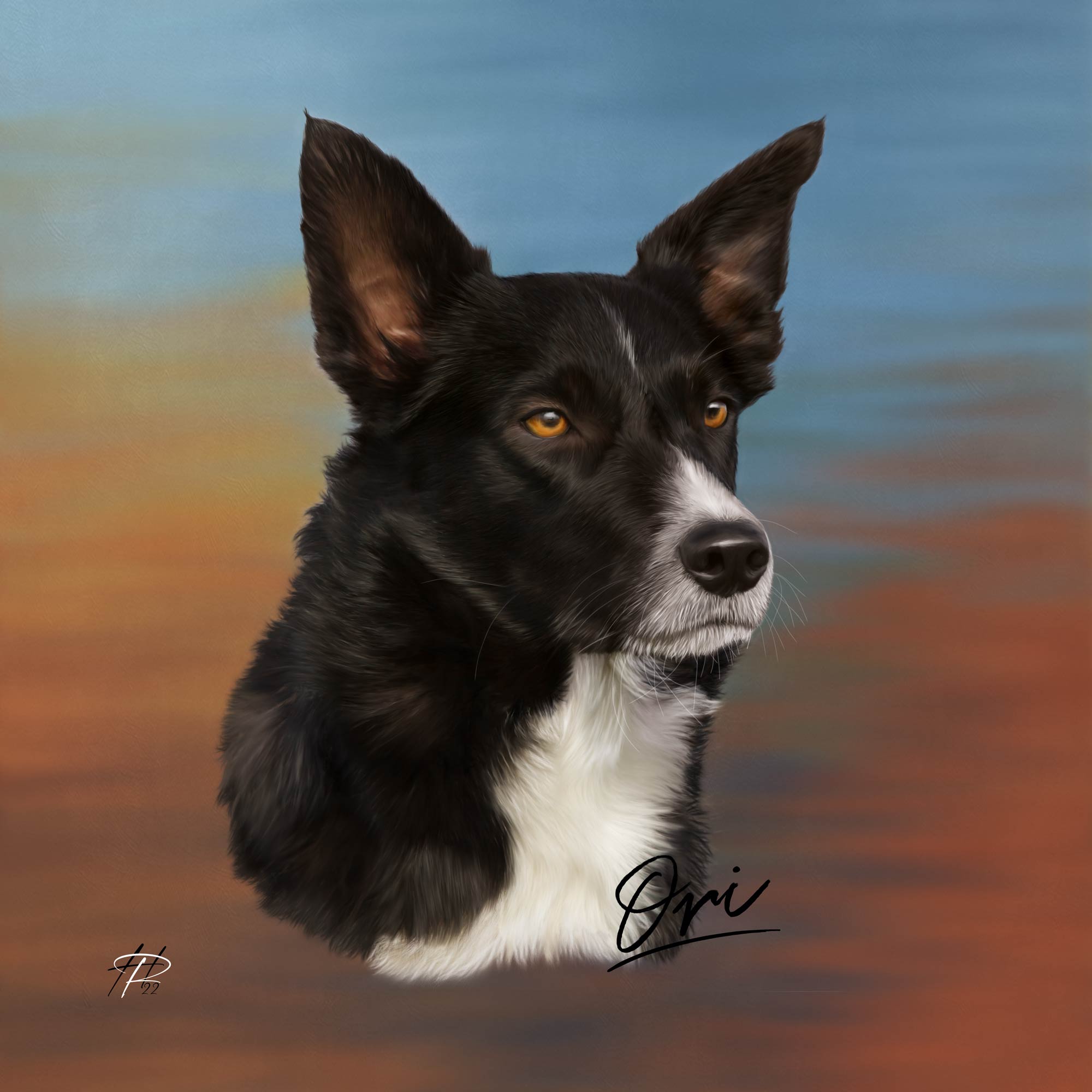 Border Coliie Rüde "Ori" handgemalt nach dem Originalbild.